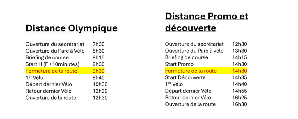 Consultez le timing détaillé des départs et des différentes épreuves.